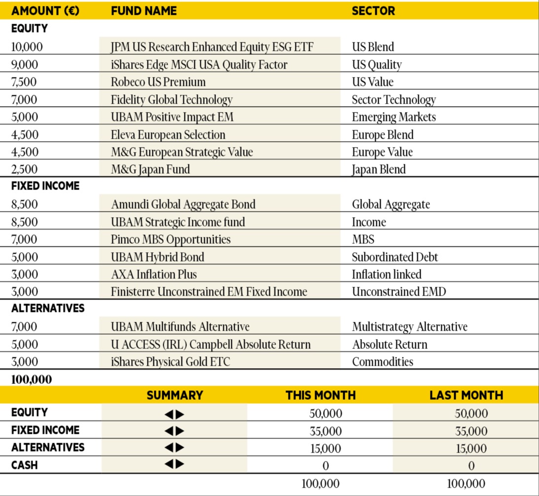 Each month in PWM, eight top European asset allocators reveal how they would spend €100,000 in a fund supermarket for a fairly conservative client with a balanced strategy