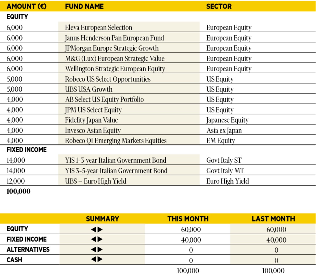 “In September, the performance of the portfolio was positive: all asset classes rose, in a new goldilock scenario: globally, growth is robust or improving, inflation is under control and central banks are normalising monetary policies: the Fed cut interest rates by 25 bps, the ECB is ready to act in case of a slowdown and the BOJ is going to hike rates in response to resilient core inflation. At the end of the month we reduced our exposure to US in favour of emerging markets, selling Vontobel US Equity and buying Robeco QI Emerging Markets Equities.”